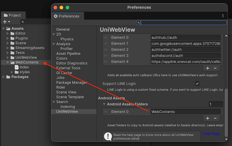 - Configure Asset Folders: Open Preferences > UniWebView (or Edit > Project Settings > UniWebView in Unity 2019.1+)